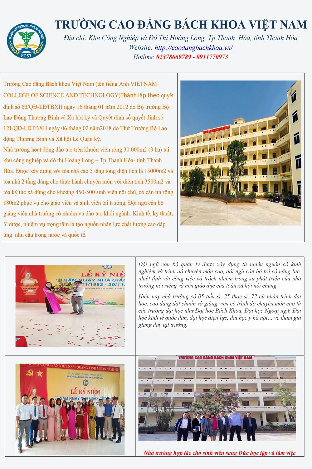 Thông tin các ngành nghề đào tạo của trường Cao Đẳng Bách Khoa Việt Nam 11/07/2019 Các khối ngành Chia sẻ: