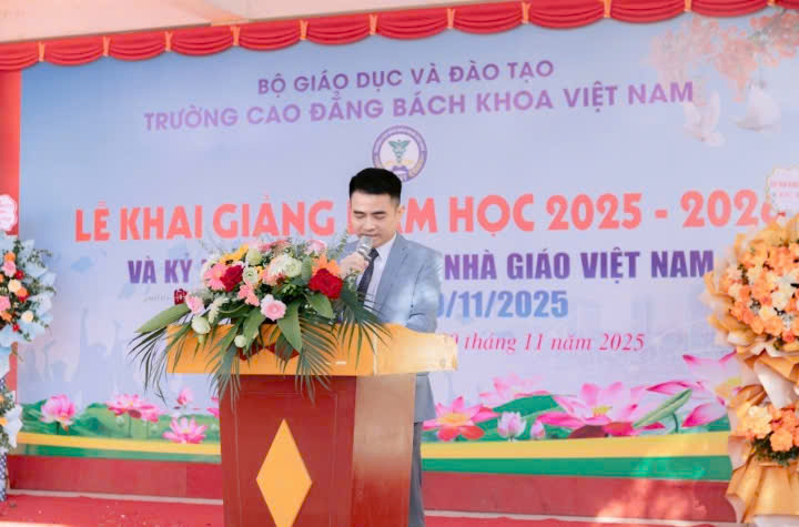 ThS. Vũ Văn Sửu - CTHĐQT- Hiệu trưởng Trường Cao đẳng Bách khoa Việt Nam đọc diễn văn khai giảng năm học 2025-2026