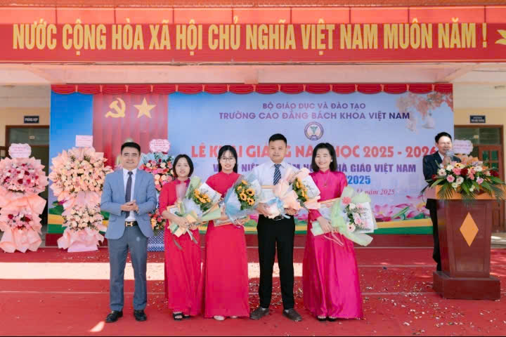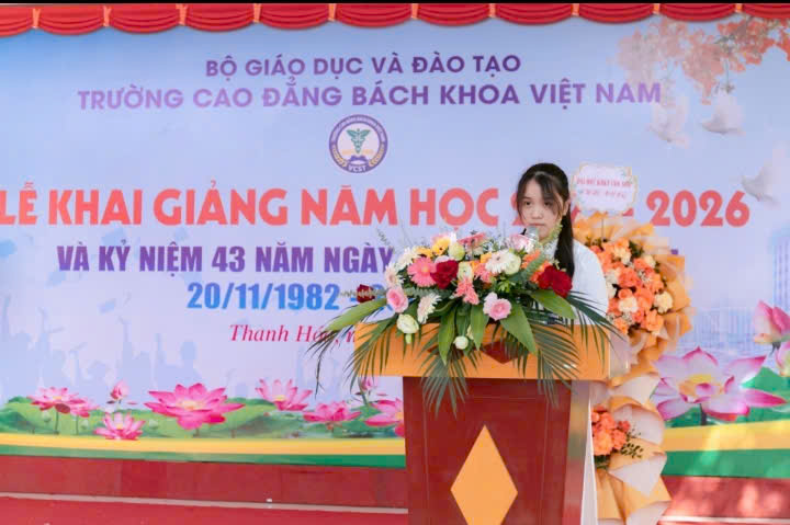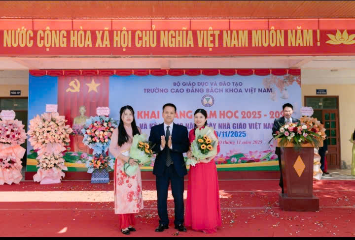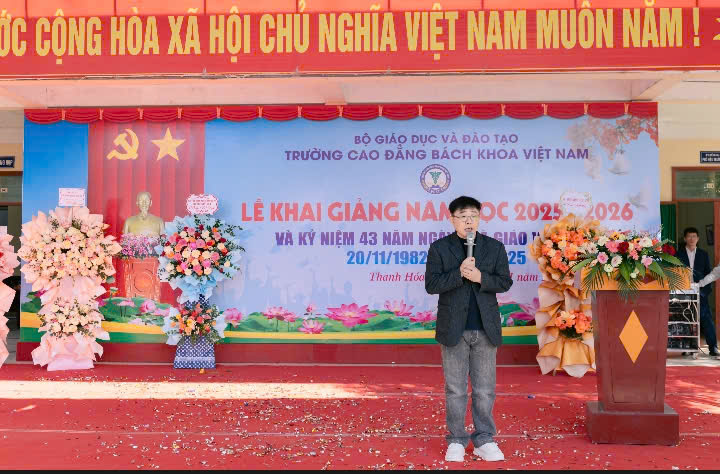 Ngày 20/11/2025, Trường Cao đẳng Bách khoa Việt Nam tổ chức Lễ khai giảng năm học 2025-2026 trong không khí rộn ràng và đầy kỳ vọng, với sự hiện diện đông đủ các đại biểu khách mời, gồm: đại diện Lãnh đạo Sở Giáo dục và Đào tạo tỉnh Thanh Hóa; đại diện lãnh đạo UBND phường Nguyệt Viên; lãnh đạo các Trung tâm Giáo dục; đội ngũ giảng viên thỉnh giảng; lãnh đạo các Trường Đại học, Cao đẳng; các công ty, doanh nghiệp đối tác trong nước và quốc tế. Sự có mặt của các vị khách quý không chỉ thể hiện sự quan tâm, phối hợp của các cơ quan, đơn vị với nhà trường mà còn là nguồn động viên to lớn, tiếp thêm niềm tin và sức mạnh để tập thể thầy trò bước vào năm học mới với quyết tâm cao nhất.
